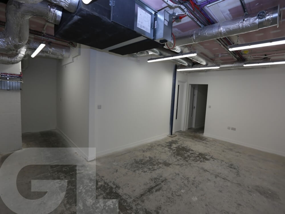 4,712 sq ft (438 sq m), this versatile space features a roller shutter with